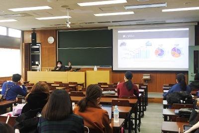 この他、「企業家」と「起業家」の違いについての説明も行われ、ウォルト・ディズニーやビル・ゲイツなど、具体的な人物名を出したり、ソニーやアップルなどの例示も出したりするなど、学生がイメージしやすいように説明していることが印象的であった。