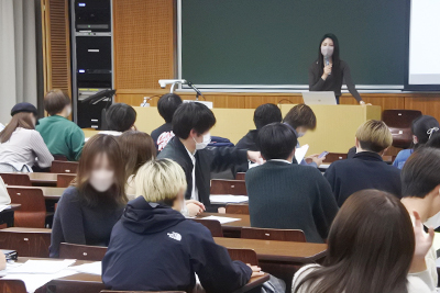 A. 受講者が多く、グループワークには一見適さない環境と思われがちですが、私が投げかけた質問は必ず全グループに意見を聞くようにしているので、受講生との距離は近いと思います。また、意見を求める際は、各グループに足を運び、発言しやすいように心がけています。
