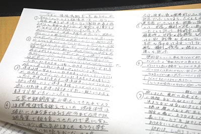 配布されるレジュメは、その日の授業のあらすじと毎回のテーマに沿った資料からなる。最後のページには前回授業で提出されたリアクションペーパーのうち20件ほどがセレクトされて掲載されている。