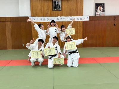大会では技の正確性やキレを競う演武競技と、昭道館合気道特有の柔道の様に組み合い自由意志のもと技を掛け合う乱取競技の二種目が行われます。新しいことに挑戦したい、部活もバイトも両立したい、という方におすすめです!年中部員を募集していますので、お気軽に見学にきてくださいね!