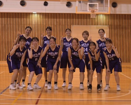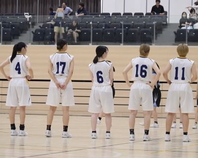私たち女子バスケットボール部は、プレイヤー9名で活動しています。練習は週2.3回、大会前は週3.4回行っています。
