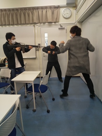 公演が近い時期に、落語演者は部員の都合に合わせて稽古日程を都度組んでいます。お笑い演者もネタ合わせや打ち合わせを部室で行います。