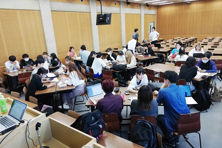 「前期澤柳塾」(注)は、授業時間外(18:00~19:30)の全10回(5月8日~7月10日)のプログラムで、大学1・2年生計36名が参加。企業の課題解決をテーマにした産学連携型のPBL(課題解決型学習)で、講師からのレクチャーや社会人との対話セッションも交えて、8つのグループに分かれてチーム活動を行いました。グループ毎のプレゼンテーション後には企業から講評をいただき、これまでの振り返りやこれからの大学生活への一歩を踏み出すためのアクションプランの作成などを行いました。