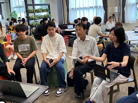 後半のテーマの活動成果発表会は、7月12日(金)に学内グローバルラウンジにて開催しました。発表内容の例として、売店のフードロス・値下げ情報の発信、TABETEとの連携、落とし物市、成城地域を対象としたオリジナルバザーなどが挙がりました。