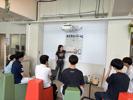 後半のテーマの活動成果発表会は、7月11日(金)に学内グローバルラウンジにて開催しました。学生からの提案には、学園内売店のDX化アプリ開発、教科書のリユースシステム、成城学園のSDGsに山羊を飼おう、モノの循環(シェア)アプリ開発、マイボトル持参ポイントシステム、成城地域のスーパーの食品トレー削減が挙がりました。