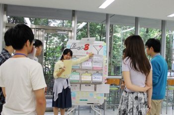 初日、2日目にさまざまなワークを行い、最後のミッションはチームごとに作成した「学生交流プログラム」のPRポスターを使ってのポスターセッション。2日間の学びを生かし、テレビ通販の設定で学生交流プログラムを「商品」として売り込んでみたり、昔話の語り手風に説明したり、アトラクションのキャストになりきってみたり…それぞれのチームの個性をいかんなく発揮しました。全員が順番に発表しましたが、大学に入学してまだ半年も経たない1年生とは思えないほど、自信を持って話していました。