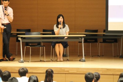 ガイダンスには、すでに来春の就職先が内定している大学4年生が登壇。高校時代は理系希望であったが、大学では国文学を学び、銀行に内定したという先輩が、どのような過程を経て今に至ったかを語っている間、生徒たちは真剣に耳を傾けていました。大学で何を学ぶのか、自分の将来を考えたうえで行動すれば、未来にはたくさんの可能性が広がるはずです。ガイダンスの最後に訴えたのは、「未来を好奇心と行動力でつかみ取ってください」ということ。高校生たちには、自分の未来と向き合って行動してもらえればと思います。