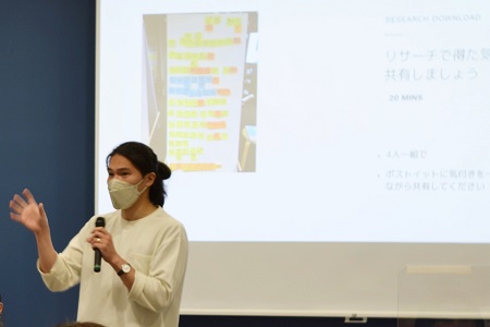 「DESIGN THINKING LAB」に参加した20名(全学部1~3年生)は、「どのようにして、コロナ対策下のキャンパスライフをより一層楽しくできるだろうか?」をテーマに、デザイン思考を実践しました。