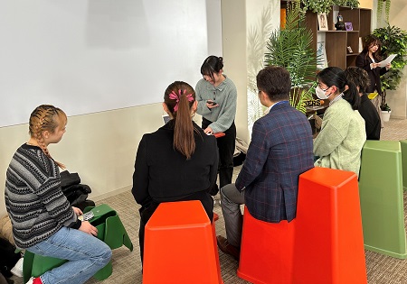 2023年12月22日(金)、初年次キャリアデザイン科目「プロジェクト演習〈ホスピタリティとサービス〉」1)の報告会を、学内グローバルラウンジにて開催しました。