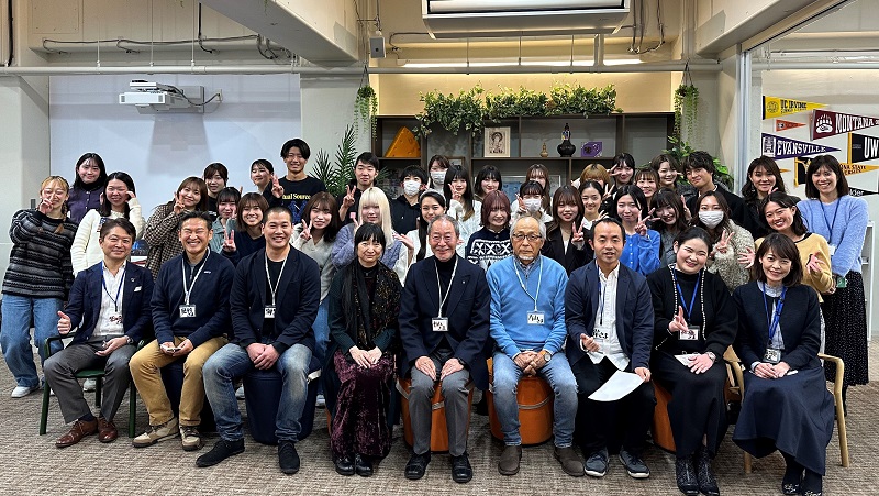 授業に登壇いただいた皆様、学生のインタビューにご協力いただいた皆様、学生、教職員と全員で。