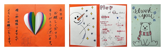 有志の“おもてなし隊”が、ゲスト一人ひとりにカスタマイズした手づくりの「ネームタグ」と、「インビテーションカード」(日本語・フランス語)を作成。ゲストはこのギフトを携帯しながら各ブースを巡回し、終了後には大切にお持ち帰りになられました。