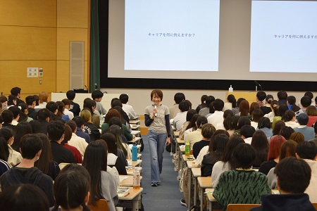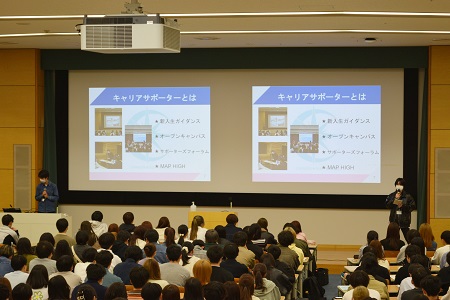 新入生オリエンテーションの一環として、4月4日(木)、「就職・キャリアガイダンス」を開催しました。(4学部合計1,319名参加)