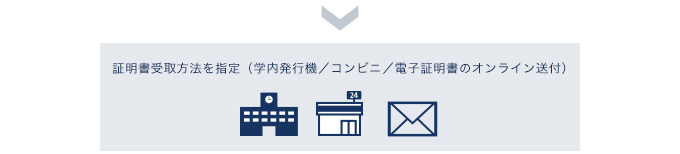※学内発行機で受取の場合、交通系ICカード(Suica、Pasmo等)での決済も可能です。ただし、現金やスマートフォンを利用した電子マネー機能は利用できません。