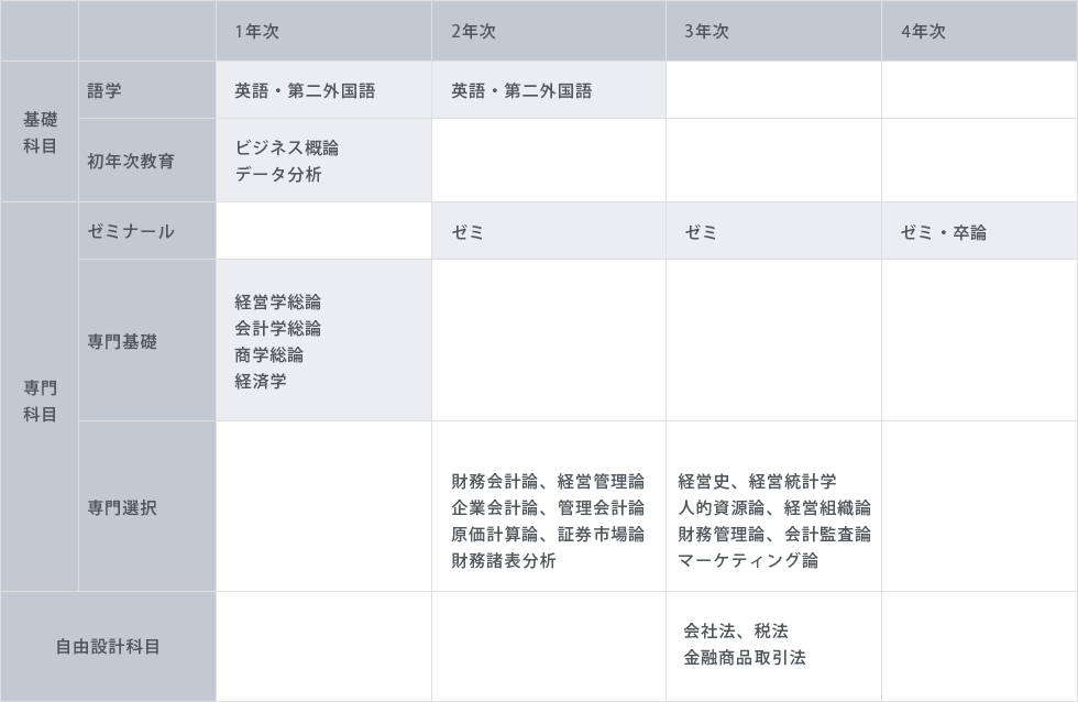 2年次は、会計の基礎的な知識を修得するために、基本的な簿記・会計学のテキストの輪読発表を行います。テキストの輪読は、グループワークを中心として行い、テキストの各章を分担報告することになります。報告の後、関連するテーマについてグループディスカッションを行います。簿記のテキストを使用する場合は、問題演習も行いますので、電卓は必須です。テキストの輪読を通じて、簿記・会計の基礎的な知識を修得するのはもちろん、相手に伝わりやすい発表の仕方やレジュメの作り方についても学習します。