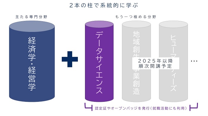 DAPの第1弾プログラムとしてデータサイエンスのスキルを高めるプログラムを2024年度より開設します。経済学・経営学とも密接に関係しているデータサイエンス分野の知識・スキルを身につけ、データ駆動型の思考力を鍛えます。