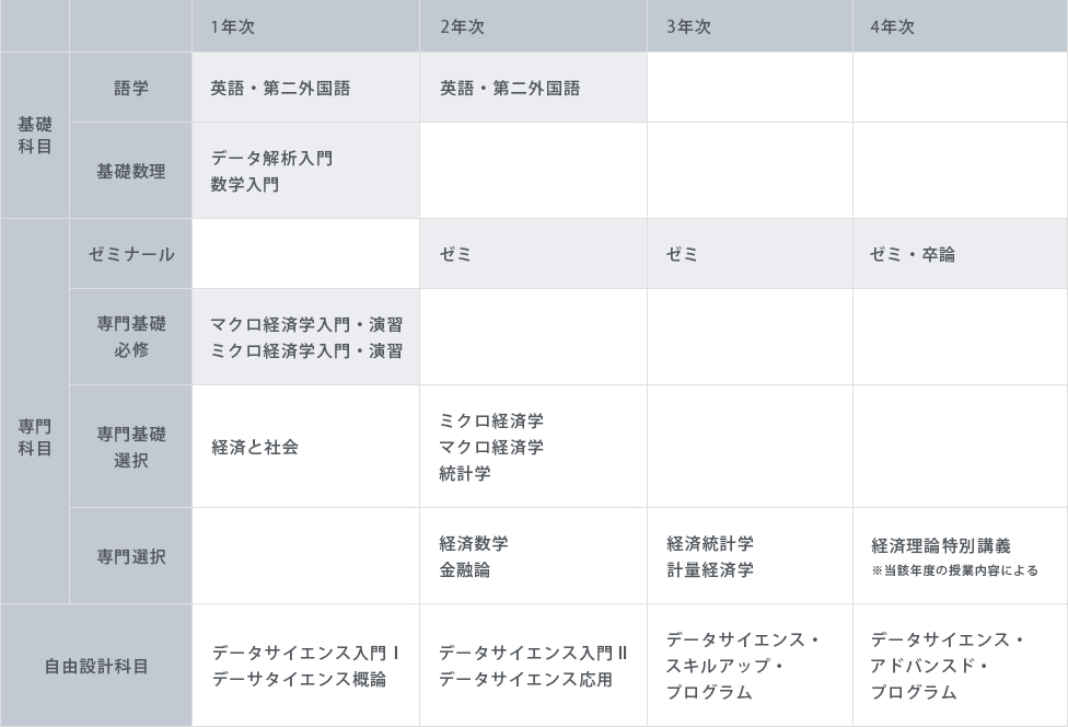 2年次には,微分積分と線形代数(ベクトルと行列)を中心とした数学を,黒板で問題を解いていく演習形式で学ぶ。これらは,ファイナンス理論やデータサイエンス,それらのためのコンピュータ・プログラミング習得のために必要不可欠な準備である。3・4年次には,参加者の希望に基づき上記2分野から1つ選択して,基本的な文献を輪読形式で議論しながら読み進み,演習問題を協力して解いていくことによって理解を深めていく。また,RやPythonといったデータ分析に適したコンピュータ言語の初歩を習得する。4年次後半には,参加者が各自ゼミと平行して卒業論文プロジェクトに取り組み,進捗状況の定期的なプレゼンテーションをしてもらう。なお,卒業論文では,自分の手で実際のデータを収集し,ソフトを使って分析してみることは必須条件とする。ゼミの成績評価は,出席(無断欠席2回以上は不合格),議論への参加度,学習内容の理解度(小テストや期末試験を行うことがある)に基づいて行う。