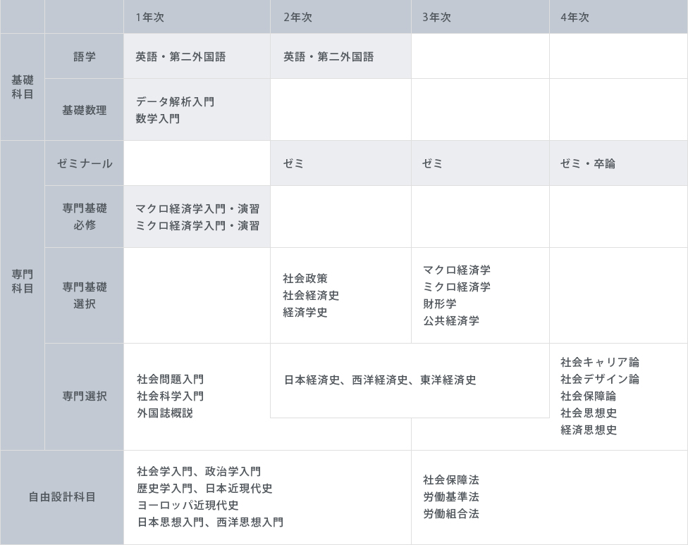このような「社会政策」に関して、そのとらえ方を基礎からきちんと理解することが2年次ゼミのテーマである。テキストは社会政策入門書を用い、皆で読み合わせてすすめていく。3、4年次ではそこで学んだことを土台に、わが国の「社会政策」のあり方について、歴史的にあるいは他国と比較しながら考える。大学を巣立つときに、勉強した甲斐があった、と心から思えるゼミをめざしたい。