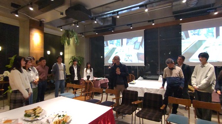 境研究室の交流会が、11月9日(土)午後に成城大学8号館ラウンジ#8にて開催されました。本年で8回目の開催となります。教員自身のネットワークを中心として、2014年以来定期的に開催されています。時間帯をⅠ部・Ⅱ部に分けて構成しています。会場ではビュッフェ形式の食事が用意され、スクリーンには境研究室のゼミ活動、商店街取材、フィールドワーク、経営学合同ゼミなどの活動の様子を収めた動画と写真が投影されます。交流会の参加者は、境研究室のOB・OG、大学院修了生、教員が講師をつとめる「成城学びの森」受講者はもちろん、近隣商店街、行政(世田谷区)の関係者も含め性別や世代を問わず多種多様です。参加者はⅠ部・Ⅱ部合わせて70名となりました。