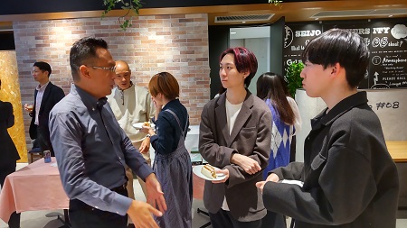 交流会では、ゼミの先輩後輩、全学部の卒業生、学びの森受講者、本学の近隣周辺の方などとの幅広い交流やつながりが得られ、視野が広がり就職活動ひいてはキャリアについて考える良いきっかけになっていました。
