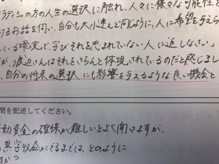 現地の写真紹介を交えた講演は学生からの反響もとても良く、聴講者アンケートでは「バングラデシュの現地に行ってみたい」「自分にも何かできるかもしれないと思った」「自分の将来を考える上でとても参考になった」「自分も何かに挑戦してみたい」というコメントが数多く出ました。