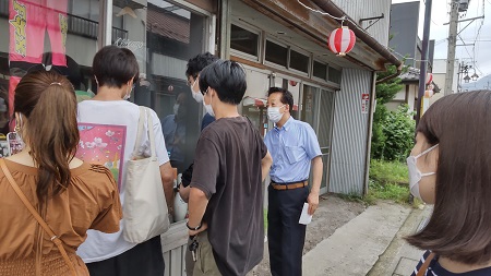 元来,当ゼミでは,成城を含む世田谷区で広範囲に実施してきたフィールドワークのなかで,特に小田急沿線の下北沢に注目しました。本年3月に新たな商業施設「ミカン下北」が井の頭線高架に誕生したこと,変化に適応したより良い町の実現を目指して,エリアマネジメントを展開していること,そして昨年2021年11月に,下北沢で初めて開催されたファーマーズマルシェに長野県飯綱町*2が初出店した事実を知りました。そこで,合同ゼミの共通テーマに掛けて,この町の実態を調べ,消滅可能性都市との関わりや課題と解決策を探ることになりました。今年は行動規制が撤廃されたことから,実際に飯綱町には8月16日,17日の2日間フィールドワークを実施しました。