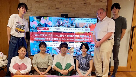 境ゼミの研究テーマは「エリアマネジメントに基づく地域の存在価値の向上~長野県飯綱町における主要拠点のトライアングル化と社会善充足の提案より~」でした。