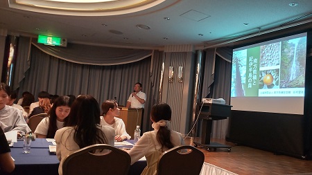 発表大会の後は、(公財)南方熊楠記念館 学芸員/神奈川大学非常勤講師の三村 宜敬(みむら・のぶたか)先生による特別講演「南方熊楠と紀伊半島の森」が講じられ、興味深い貴重なお話と観光物産・ご当地グルメも紹介されました。