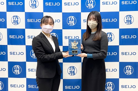 上田ゼミ「Team Water」は、学術研究分野で「ウォーター・ディスクロージャーの現状 近年の日本企業の開示を手がかりに」という研究報告を行いました。特定の審査項目が極めて優れていたチームを表彰する「審査員特別賞」に選出され、賞品として「楯」とAmazonギフト券1万円が授与されました。