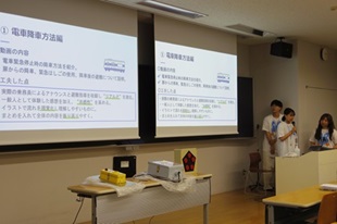 別室での模擬装置体験、山内ゼミナール学生作成の動画上映の様子