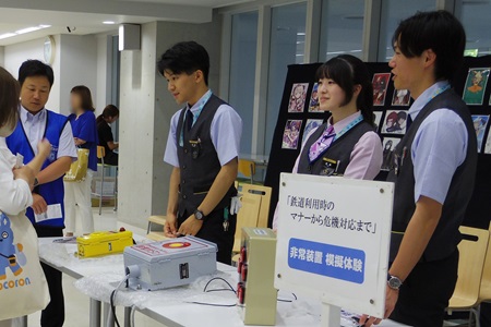 また、参加者には教材映像の視聴やクイズへの参加、車内の非常装置に実際に触れる体験などを通して、緊急時における基本的な対応行動について理解を深めていただきました。各コーナーでは、来場者が熱心に取り組む様子が見られ、安全に対する意識を高めるきっかけとなったものと思われます。