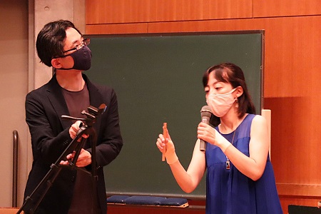 芸術学科ではかねてから学生が実際の芸術作品・活動に触れることを重視し、京都奈良の見学旅行をはじめ、演奏会、上映会、舞台、展覧会などの見学を「芸術学・美術史実習」の中で実施してきました。それに加えて今年度からは、演奏家や俳優、映画監督など、制作・実践にたずさわるゲストを大学キャンパスに迎え、実演や教員との対談などを通じて、芸術作品や実践現場への理解をより深めてもらう「芸術学科ワークショップ」という取り組みを始めています。今回のレクチャー・コンサートはその初回と位置づけられていて、今後も年2~3回の実施を予定しています。