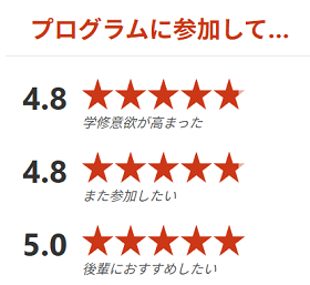 プログラム後のアンケート(回答率92%)では、次のような高い評価が得られました(5点満点)。