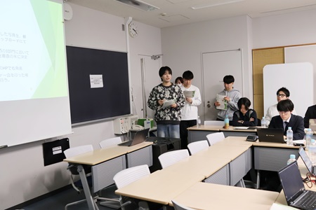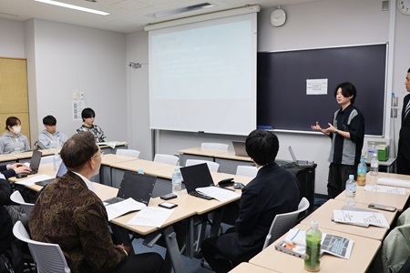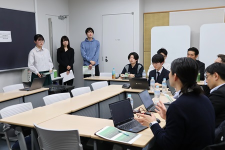 それぞれの発表の後には、世田谷区役所の皆さまからの質問や講評の時間がありました。「この企画がより注目を集めるにはどうしたらいいと思う?」「緑の保全に興味を持っていない人を巻き込むための工夫は?」といった学生の考えを深掘りする質問やアドバイスがあり、意見交換をしながら議論を深めました。