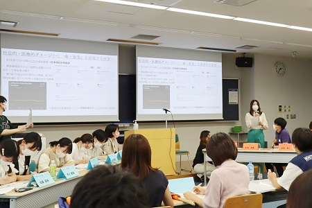 各チームは議題に対して経済や政策、法制度、ジェンダー、経済的弱者など様々な観点から準備をし、論を展開しました。それに対する質疑応答では相手の弱点をつく鋭い質問が飛び交い、中には相手へ質問しつつ、自らの意見を補足する強者も。ジャッジを担当した学生たちは話し方や配布資料、質疑応答時の対応といった項目をもとに判定を下しました。勝敗が決まった後は、各チームから相手チームのMVPを選出し、お互いの健闘を称えあいました。