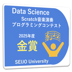 データサイエンス教育研究センター(CDS3)では、STEAM教育の一環として「音楽演奏プログラミングコンテスト」を開催しています。このコンテストではビジュアルプログラミング言語「Scratch」を用いて、プログラムによる楽曲演奏の出来栄えを競います。制作過程では、楽譜の音符1つ1つをScratchのブロックとして繋ぎ合わせるだけでなく、サブルーチンや関数の活用といった「論理的なプログラム構成」が求められます。さらに楽器の組み合わせや音量の細かな調整など「芸術的な表現力」を駆使し工夫しながら、1つの音楽演奏作品として仕上げていきます。