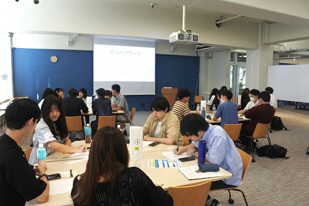 次にグループワークでは、大学生の日頃の悩みについてグループごとに意見を出し合い、それに対する解決策を考えました。違う環境で生活を送っているからこそ解決策の観点が斬新なものもあり、とても興味深かったです。