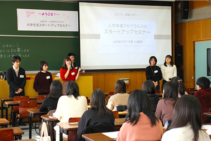 大学入学前の不安の解消、大学の学びへの円滑な参加を目的として、個人ワーク、グループワークを中心に行うプログラム。事前研修を積んだ在学生がワークを進行することで、入学予定者と在学生の交流の場になり、在学生自身の能力向上にもつながっています(一部の選抜方法、一部学部を対象に実施)。