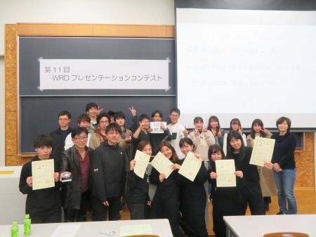 12月14日(土)、共通教育研究センター主催による「第11回WRDプレゼンテーションコンテスト」が開催されました。「WRDプレゼンテーションコンテスト」は、本学の全学共通教育科目「WRD」における成果発表の場として活用してもらうために2009年度から開催され、今年度で11回目を数えます。