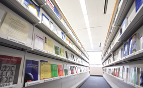 The university library was built in 1989. The building stands four floors above ground, with an additional three floors below ground.