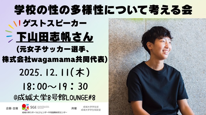 成城大学スポーツとジェンダー研究国際研究センター(SGE)では12月11日(木)の18時から、学内における性の多様性への理解促進を目的とした「学校の性の多様性について考える会」を開催いたします。