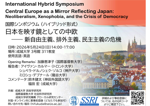 5月24日(日)14時より国際シンポジウム「日本を映す鏡としての中欧:新自由主義、排外主義、民主主義の危機」を成城大学民俗学研究所、国際基督教大学社会科学研究所、成城大学研究機構グローカル研究センターの共同開催により実施いたします。