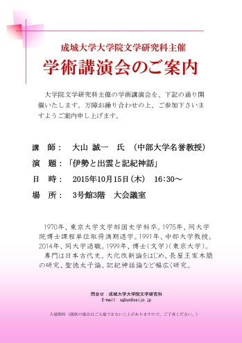 成城大学大学院文学研究科主催の学術講演会を、下記の通り開催いたします。