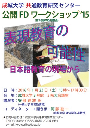 本FDワークショップは、成城大学の初年次教育にあたる科目「WRD」の目標を高次元で達成するための情報交換を狙いとした研究会を公開するものです。