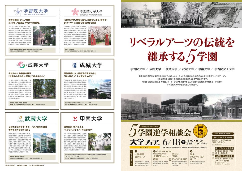 • 5学園進学相談会「リベラルアーツの伝統を継承する5学園」【終了しました】【終了しました】