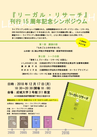 『リーガル・リサーチ』刊行15周年記念シンポジウム