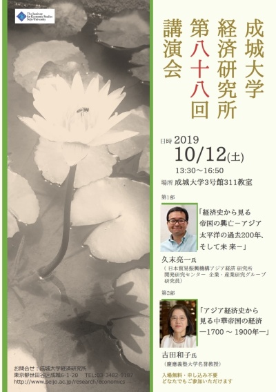 下記により成城大学経済研究所第88回講演会を開催いたしますので、ご参会くださいますようご案内申し上げます。