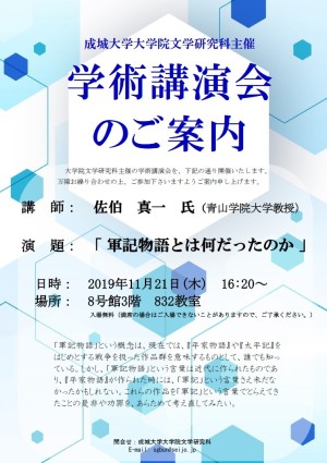 大学院文学研究科主催の学術講演会を、下記の通り開催いたします。万障お繰り合わせの上、ご参加下さいますようご案内申し上げます。