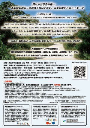成城大学にて、国立国語研究所主催 方言版異言語脱出ゲーム「紡がれるもの ~おじぃとおばぁと僕の物語~」を開催します。