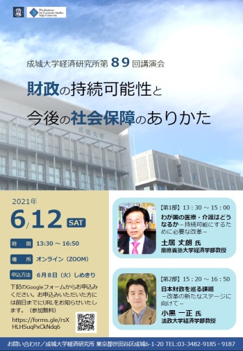 経済研究所では、下記のとおり第89回講演会をオンラインにて開催いたします。