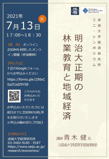 経済研究所ミニ・シンポジウム 「明治大正期の林業教育と地域経済」